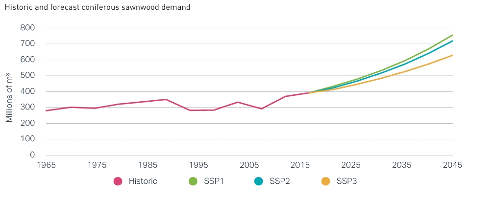 “From our analysis, future supply is projected to fall short of demand, with the best scenario showing only a 1.1x increase in supply compared to current levels – significantly short of the projected 1.5-1.8x growth in timber demand,” it said. “This demand-supply gap is even worse under the base case scenario, where projections remain static at current levels, and the downside scenario, which assumes supply will fall below today’s levels due to forest disturbances.”